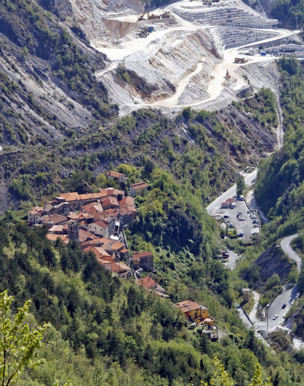 Le Apuane fanno da cornice maestosa a questo paesaggio singolare a pochi chilometri da Carrara: solo il nome, richiama immediatamente il candido marmo che si estrae e si estraeva dalle sue cave.