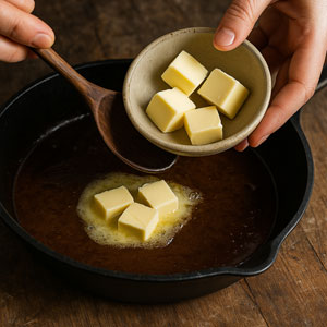 c. Montare con il burro freddo per ottenere una salsa lucida e vellutata.
