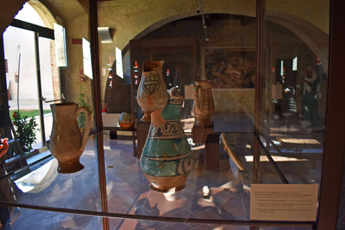 All’ingresso capiamo subito di trovarci in un ambiente particolare: oltre alle teche che raccolgono reperti medievali, a destra due grossi tini separati da una breve scalinata, ci fanno capire che l’ambiente era a suo tempo destinato ad accogliere i risultati della lavorazione dell’uva, siamo nella prima sala detta La tinaia e iniziamo la nostra visita all’interno del MaM.