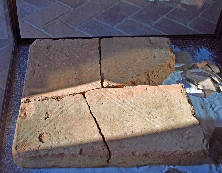 Le teche contengono reperti medievali: vasi in ceramica; mattoni di epoca romana usati come copertura alle sepolture; una sepoltura rinvenuta nell’area del chiostro