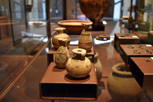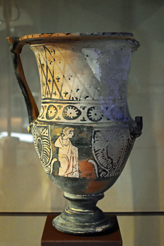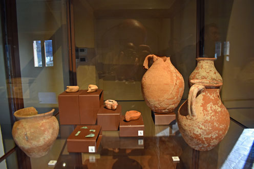 Necropoli del Casone dalla tomba dei Calisna Śepu: ceramica etrusca a figure rosse (III secolo a.C.), anfora con coperchioa figure nere, ceramica attica (550 – 525 a.C. circa)