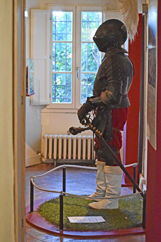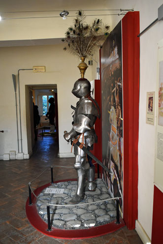 Siamo nella sede dell’Ufficio del Turismo di Monteriggioni che, oltre a pubblicazioni e souvenir, alloggia, in una location antica, con entrata a sinistra della Chiesa, un percorso didattico “Monteriggioni in Arme”: nelle varie sale armi e armature medievali e rinascimentali, contestualizzate da diorami sulla storia di Monteriggioni che illustrano i mezzi e le tecniche di assedio e combattimento nelle diverse epoche storiche.