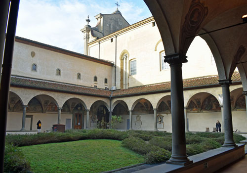 Entrati al Museo ci accoglie il chiostro di Sant’Antonino dove, in una sala laterale, la sala del Capitolo, possiamo ammirare una grandiosa Crocifissione opera di Beato Angelico.