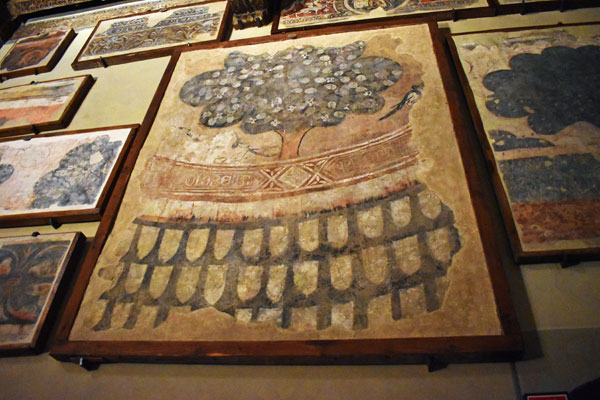 Scorriamo più volte guardando con attenzione: mensole decorate, colonne, una magnifica bifora trecentesca, un portale, un’ architrave di un tempio israelitico, stemmi, formelle scolpite, decorazioni murarie dalle case dei Pilli, Pescioni e Sassetti, il dipinto di un anonimo che raffigura il Mercato Vecchio nel XVII secolo.