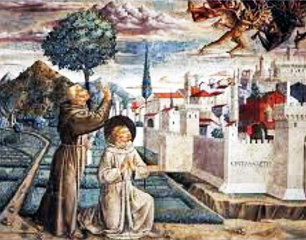 Nella famosa battaglia di Campaldino (1289) l’esercito ghibellino aretino fu sopraffatto dalle preponderanti forze guelfe fiorentine e senesi. Gli eserciti vincitori però non riuscirono ad espugnare la città che seppe resistere eroicamente agli assalti. Arezzo così divenne ghibellina grazie anche all’odio nutrito verso i guelfi di Firenze.
