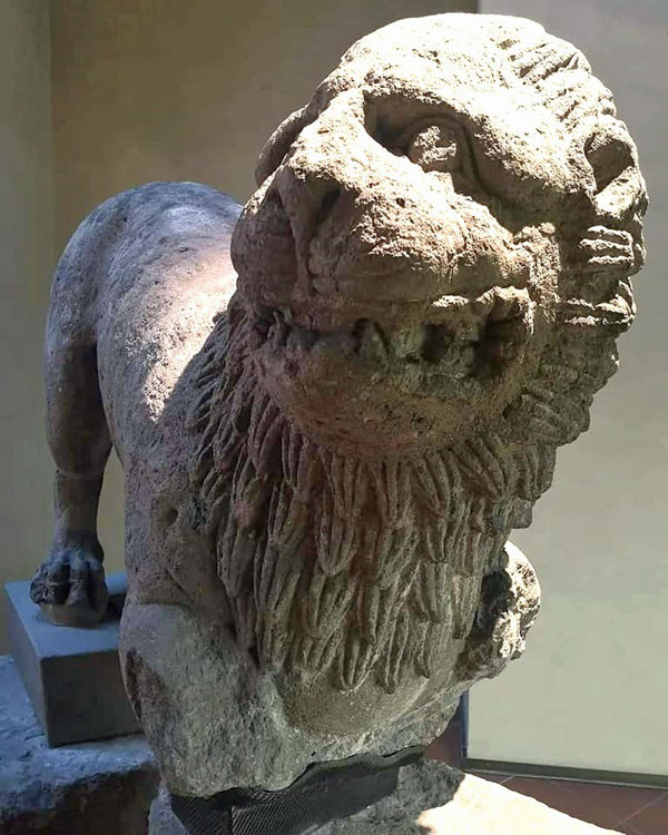 Il leone, che è uno dei soggetti prediletti della scultura funeraria etrusca, aveva la funzione di difendere e proteggere l’ipogeo ed il suo corredo da eventuali predatori.