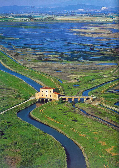 Navigabile Nuovo che attraversava il Padule in direzione di Grosseto ma senza raggiungerla. In età Leopoldina all’interno del più vasto piano di risanamento dell’area, basti pensare all’imponente lavoro di bonifica operato dallo Ximenes, si tentò di far giungere il canale fino alla città e addirittura di congiungerlo con l’Ombrone (navigabile fino al ponte sull’Aurelia già in epoca romana) ma il progetto non venne mai interamente realizzato.