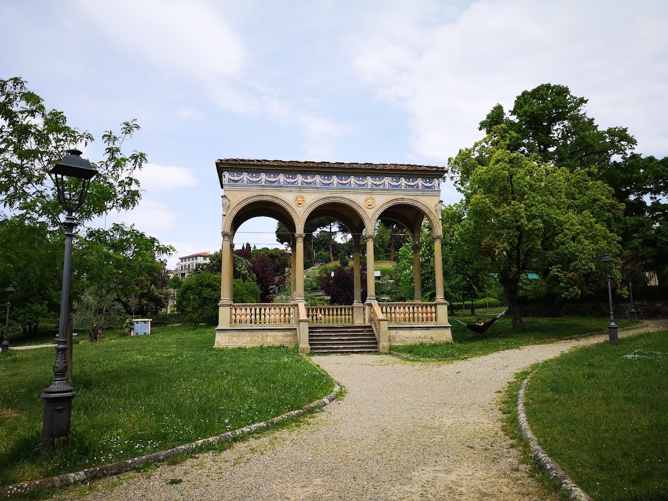 A sinistra è il Giardino della Società Toscana di Orticultura. È un luogo bellissimo provvisto di piante superbe, di comode serre e di un meraviglioso tepidario che fu edificato col disegno dell’egregio architetto Cav. Roster. Il giardino ha servito varie volte a delle esposizioni di fiori che sono riuscite splendidamente in grazia dell’ampiezza e dell’amenità del luogo.”