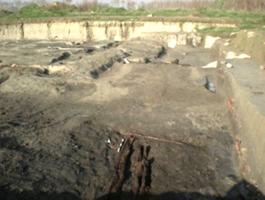 Nel 1988, sempre nell’area centrale della città, sono stati portati alla luce resti carbonizzati di una casa (pali e pareti di legno con concotto) con pavimento di tavole di legno.