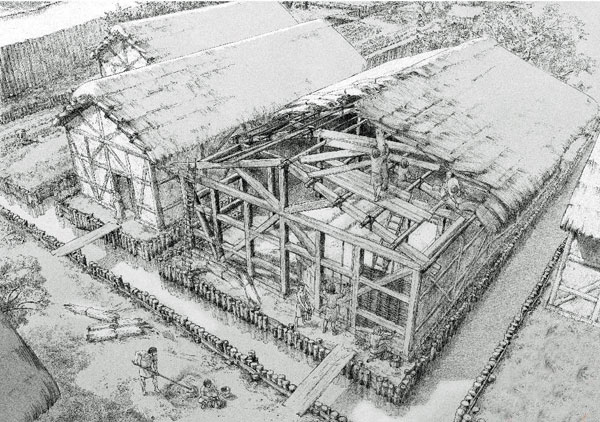 Le abitazioni – riconoscibili come tali per la planimetria, le dimensioni, la presenza di focolari, le tracce di arredi e la tipologia di reperti (es. vasellame da cucina e da conservazione) -, avevano intelaiature di travi di legno e poggiavano su pali conficcati nel terreno collegati da travi orizzontali. Le case avevano forma rettangolare, tetto a due spioventi, pavimenti in terra battuta (più raramente in tavole di legno) e pareti esterne, realizzate con paletti di legno ed incannucciato di rami e canne, ricoperte con argilla concotta.