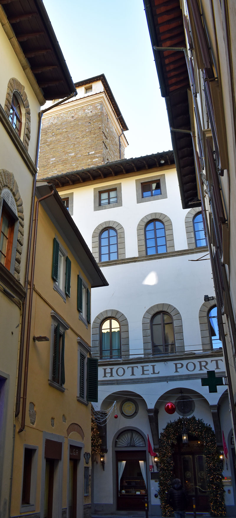 Oggi di questi palazzi medioevali uno solo ne sussiste ed è fra i più belli e più importanti di Firenze: il palazzo fabbricato dai Davizi ed appartenuto per il corso di tre secoli alla famiglia Davanzati. E uno dei tipi più completi e più tipici dell’architettura fiorentina del periodo tra il XIV e il XV secolo ed ai pregi stilistici della maestosa facciata corrispondono quelli del singolarissimo cortile. D’epoca più moderna, ma di importanza artistica rilevantissima, sono pure le facciate dei due palazzi dei Bartolini-Salimbeni: uno che ha la fronte principale sulla Piazza di S. Trinita et può considerarsi come il primo saggio, il primo tentativo d’uno stile nuovo che sostituiva nelle finestre l’architrave piano agli archi, un tentativo che fruttò a Baccio d’Agnolo le critiche più acerbe de’ suoi concittadini; l’altro colla facciata retta dagli sporti, bene adorni e di forme elegantissime, ma ispirato nel resto allo stile del tempo e che Baccio aveva seguito nella costruzione di altri palazzi fiorentini.