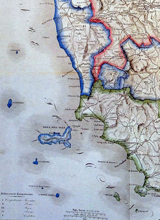 I piemontesi, ben decisi ad evitare il ripetersi di pretestuose occupazioni, fino all’unità d’Italia ne fecero un’isola in qualche modo fortificata: restaurarono le tre torri genovesi e il castello nel quale fu alloggiato un distaccamento del Battaglione Real Navi (4). Il suo comandante fu sempre un ufficiale superiore che aveva il titolo di Comandante dell’isola.