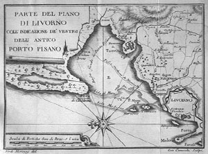 Molti documenti tratti dagli antichi archivi hanno valso a dimostrare che il primitivo borgo e poi castello di Livorno formava un solo insieme col celebratissimo Porto Pisano, l’emporio del fiorente commercio di quella città di Pisa che nei tempi lontani con poche altre repubbliche italiane ebbe il dominio de’nostri mari.