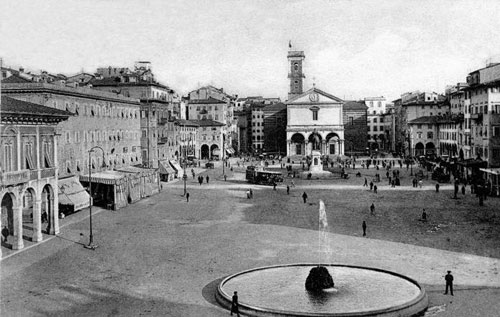 Dal piazzale di Bellavista che prospettava già la demolita Porta a Mare, lungo la spiaggia frastagliata di piccoli scogli, sulla spianata che ricorda tuttora il nome dell’abbattuto Forte dei Cavalleggeri, fino alla piazza dove sorge la chiesa di S. Jacopo ad Acquaviva, antico romitorio degli Agostiniani, si stendono e s’inoltrano nel mare numerosi stabilimenti balneari e ciascuno di essi differisce dall’altro per estensione, per carattere di forme, per l’indole della società che lo frequenta, mentre tra il mare ed il viale offrono le loro attrattive teatri, birrerie, caffè-concerto e tant’ altri mai luoghi destinati a pubblici spettacoli.