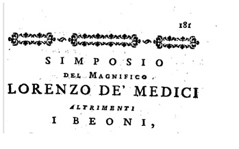 Siamo a Firenze in un periodo di grande splendore e crescita e magnificenza sia economica che culturale. Magnificenza e opulenza che spesso si accompagnano a costumi non sempre morigerati come aveva voluto sottolineare Dante quando parlava della Firenze della cerchia antica: le osterie pullulano e prosperano tanto da meritare i versi di un grande del tempo: Lorenzo il Magnifico. Già il titolo esplicita una situazione evidente: I beoni, o più esattamente Capitoli d’una historia di beoni, una rassegna dei più famosi bevitori fiorentini del tempo attribuita al Magnifico e da altri invece al suo copista. Quel che conta per la nostra indagine resta comunque il costume e la costumanza della Firenze della seconda metà del Quattrocento di bere e di sbronzarsi o comunque di apprezzare molto il buon vino, soprattutto la Malvasia o Malvagìa. Dai versi emergono oltre ai nomi dei grandi bevitori anche quelli delle osterie che offrivano non solo vino, ma anche assistenza dopo la sbronza e opportuno accompagnamento al bere con ottime pietanze.