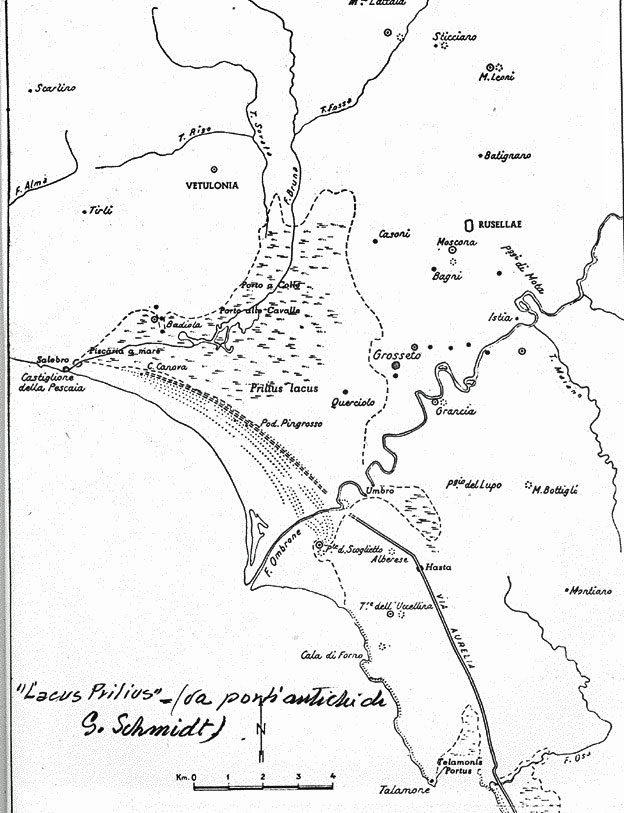 Nella storia più lontana un grande lago salato si apriva e si estendeva fino a Grosseto e Roselle, da una parte, e Vetulonia dall’altra, un lago chiamato dai Romani Prile, e che in età moderna era conosciuto come Lago di Castiglione: svolgeva un ruolo importante nell’economia favorendo i traffici verso l’interno sfruttando il corso dei fiumi e verso l’esterno con il suo sbocco nel Tirreno, un vero e proprio porto canale. Il lago costituiva inoltre un immenso bacino ittico con i suoi stagni e acquitrini tanto che fu peschiera per antonomasia per tutto il periodo medievale, al punto di conferire il proprio appellativo a Castiglione detto proprio per questo della Pescaia, e per l’estrazione del sale, elemento fondamentale nella conservazione dei cibi.