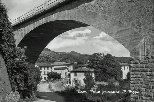 Ronta è stazione della linea ferroviaria Firenze Faenza ed è distante 7 chilometri da Borgo S. Lorenzo, il capoluogo del Mugello. Vi sono ufficio telegrafico, servizio di posta due volte al giorno, farmacia, ecc.”