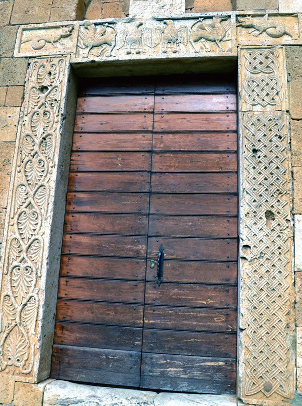 Non mancano altri segni misteriosi: riutilizzi nella facciata di sculture precedenti, una cornucopia e figure zoomorfe, attribuite ad una villa romana o comunque ad una preesistente costruzione con segni e simboli da interpretare perchè messe lì fuori contesto e che hanno interessato la ricerca di vari studiosi: la porta che si apre sul lato sud, datata X secolo, ad esempio, ha animali mitologici sull’architrave e disegni di foglie e decori intrecciati.