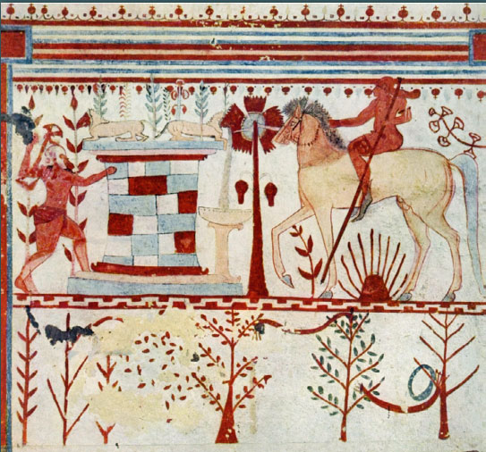 Gli Etruschi credevano in una vita eterna nell’aldilà e per questo, in epoca tarda, erigevano tombe che, contrariamente alle case, erano costruite in modo tale da durare in eterno.