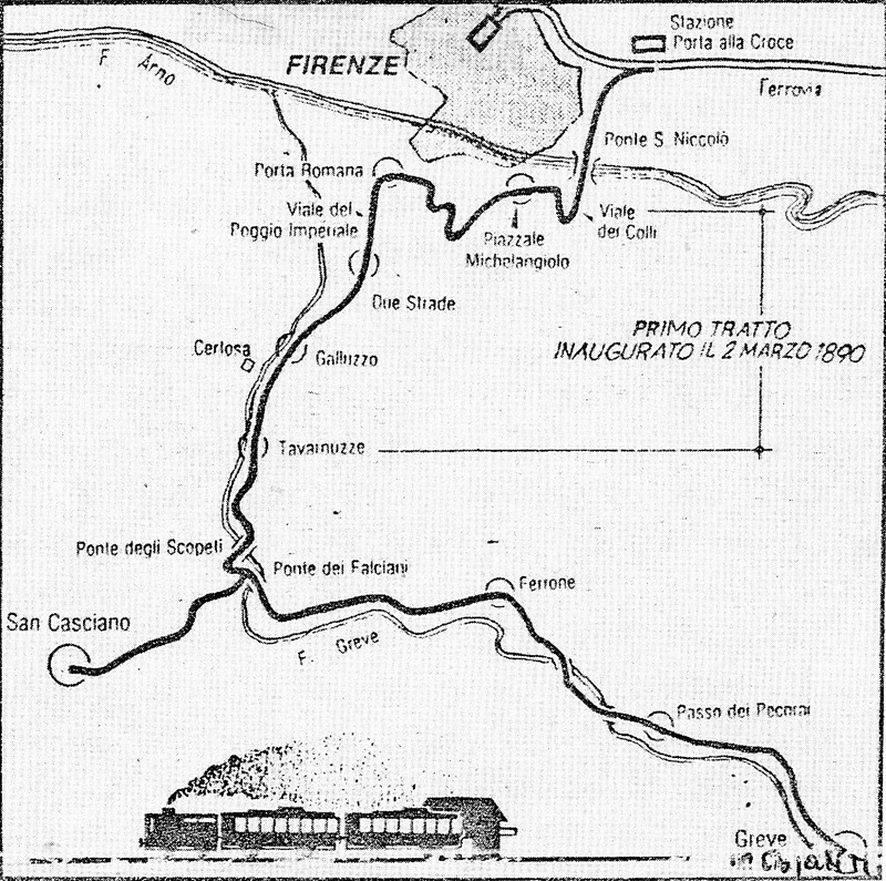 Tramvia Firenze – Bagno a Ripoli (una deviazione raggiungeva Grassina) – Rovezzano – Settignano.