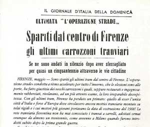 Il 20 gennaio 1958 effettuerà la sua ultima corsa l’ultimo tram, sulla linea 17. Da allora in poi su tutti i percorsi saranno utilizzati autobus e filobus, fino al 1973 anno in cui scompariranno anche i filobus completamente sostituiti dagli autobus.