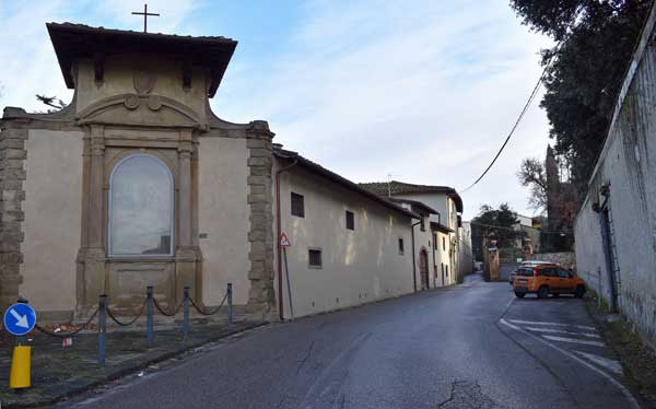 Continuando a percorrere via Vittorio Emanuele e precisamente dal luogo dov’era un tabernacolo dipinto dal Vanni, si stacca la Via de’ Cappuccini, dove sorge l’omonimo convento, che attraversa il colle di Montughi e sbocca poi presso il casale della Loggia. (Oggi la strada dopo l’incrocio con via Massaia prende il nome di via Santa Marta.
