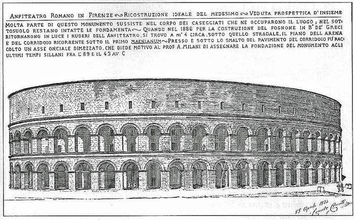 Scriveva il Davidsohn che dai documenti del XI e XII secolo risultava che alcune parti della Firenze etrusca erano ancora in piedi all’epoca e i materiali della città, distrutta da Silla durante la Guerra civile contro Mario, venivano utilizzati per nuove costruzioni, come per altro spesso accadeva: l’antica città si estendeva dai piedi del colle di Fiesole fino alle rive del torrente Affrico e del fiume Arno, lungo la vecchia strada …Continua