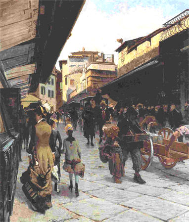 Ci piace allora riproporre alcune sue “vedute”, particolari e minuziose della Firenze di allora, in una Galleria di immagini che possano, per quanto minime, presentare e far conoscere le sue opere che, oltre all’apporto artistico, rappresentano un ampio documento a livello storico e antropologico.