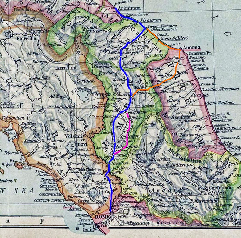 Pubblichiamo a puntate questo interessante percorso illustrato dal prof. Giovanni Caselli anche se la Flaminia toccava solo marginalmente l’Etruria nel tratto iniziale. Tuttavia, attraversando Umbria e Marche, rappresentava una importantissima via di comunicazione con l’Adriatico ed era strettamente connessa alla rete stradale dell’Etruria.