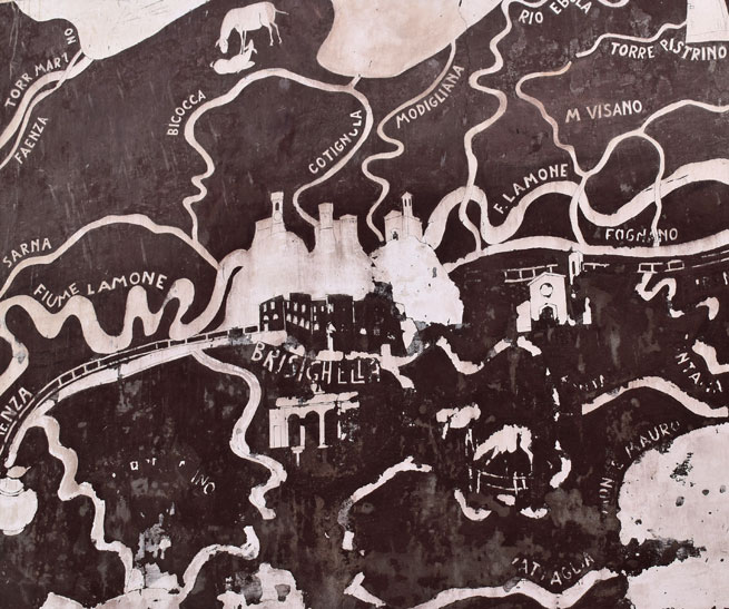 Dopo aver visitato Brisighella a noi piace propendere per il toponimo “briciola”, dominata com’è e protetta dai tre spuntoni silicei che ospitano due fortilizi, il castello e la Torre dell’orologio, e un santuario: il piccolo borgo si stende a sudest della Torre, con il suo centro storico di chiara impronta medievale; fu fortificato nel 1394 da Manfredi, signore di Faenza, che nel 1425 respinse nei suoi pressi le milizie viscontee. La sua storia annovera diversi assedi respinti, tra i quali quello del duca di Urbino nel 1467, ma fu conquistata nel 1501 dal duca Velentino e nel 1508 dai Veneziani ai quali, nonostante il breve periodo di governo, si deve l’ampliamento della rocca con un ulteriore torrione che giganteggia sull’abitato; nel 1509 il borgo fu annesso allo Stato Pontificio.